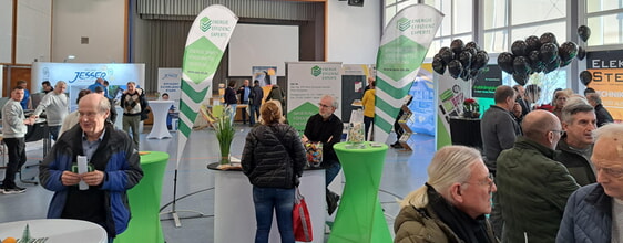 Zahlreiche Besucher nutzten das Angebot und informierten sich an den Ständen der Firmen zu modernen Heizsystemen, PV-Anlagen und Energiespeichersystemen. Wärmepumpen, Fenster und ein Eisspeicher konnten auch direkt in und vor der Halle besichtigt werden.