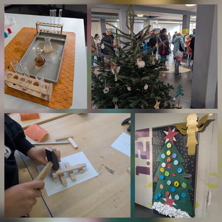In der Pizzawerkstatt wurden kleine Pizzen gebacken (AES) und im Technik-Raum durften die Kinder einen kleinen Tannenbaum selbst herstellen. Hierbei boten ablängen, sägen, schleifen und nageln einen ersten Einblick in den Technikunterricht.