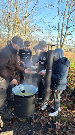 Ein besonderes kulinarisches und pädagogisches Erlebnis erwartete die Schülerinnen und Schüler der siebten Klasse der Katharina-Kepler-Schule Güglingen am Dienstag, den 9. Dezember 2025: Unter dem Motto „Kesselglück“ kochte die Klasse gemeinsam eine herzhafte Kartoffelsuppe – nicht in der Schulküche, sondern in der freien Natur auf der Reißenberghütte.