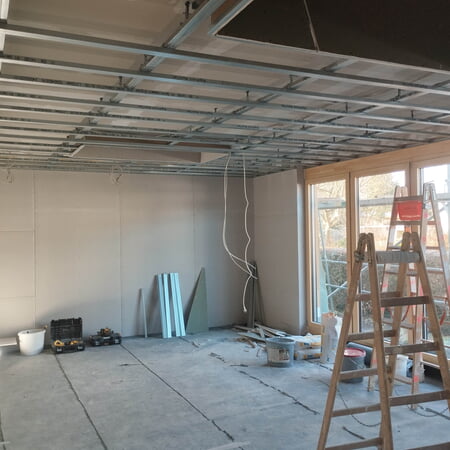 Im Inneren des Anbaus wurden bereits die Elektroleitungen verlegt, zudem hat der Trockenbau begonnen. In dieser Woche folgt der nächste wichtige Schritt: Der Estrichleger bringt die Dämmung ein, und der Heizungsbauer startet mit der Verlegung der Fußbodenheizung. Anschließend wird der Estrich gegossen, sodass im nächsten Bauabschnitt die Bodenbeläge eingebracht werden können.