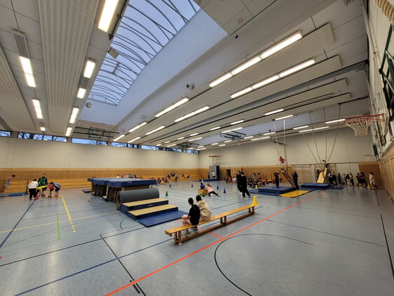 Da draußen kein Schnee mehr lag, wurde die Sporthalle in eine aufregende Winterlandschaft verwandelt. Ein großer Parcours sorgte für viel Bewegung, Spaß und spannende Herausforderungen.