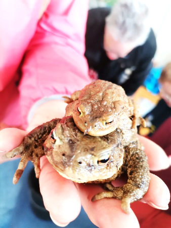 Voller Neugier durften wir helfen, die Kröten aus den Eimern zu sammeln, damit sie sicher über die Straße in den Michelbachsee gelangen.