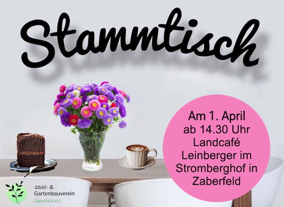 Unser nächster OGV Stammtisch findet am Mittwoch, den 01. April 2026 ab 14:30Uhr im Landcafé Leinberger im Stromberghof in Zaberfeld. Wir freuen uns auf rege Teilnahme. Mitglieder und Interessierte sind herzlich eingeladen!